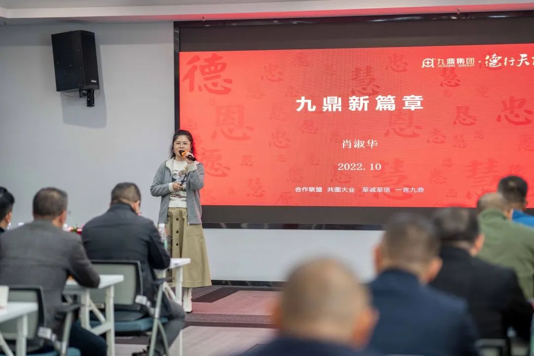 集團副總裁肖淑華圍繞“九鼎新篇章、九鼎飼料價值服務體系、九鼎飼料不一樣”三大主題作工作指導