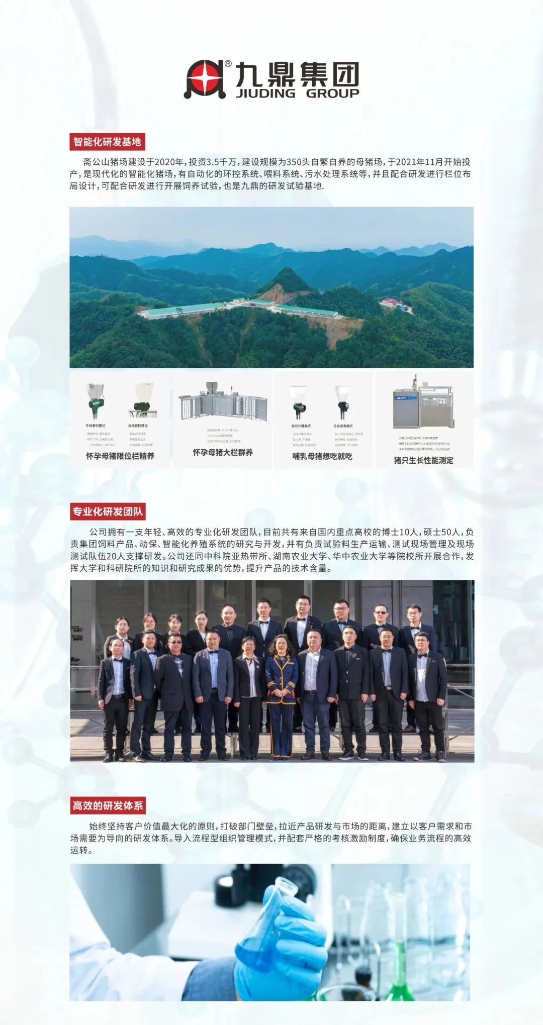 九鼎集團29年來專業研發生產豬料,在產品創新和實踐上一直走在行業前列,未來九鼎也將繼續以客戶為中心,為廣大養殖企業提供優質的飼料產品及服務,助力生豬養殖業走向高質高效的發展道路!