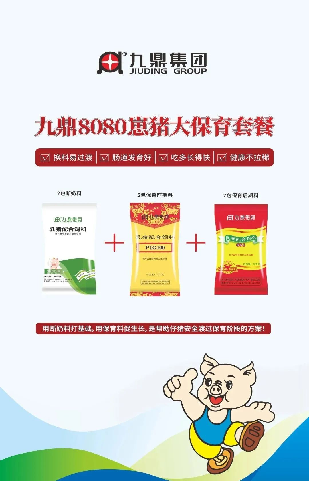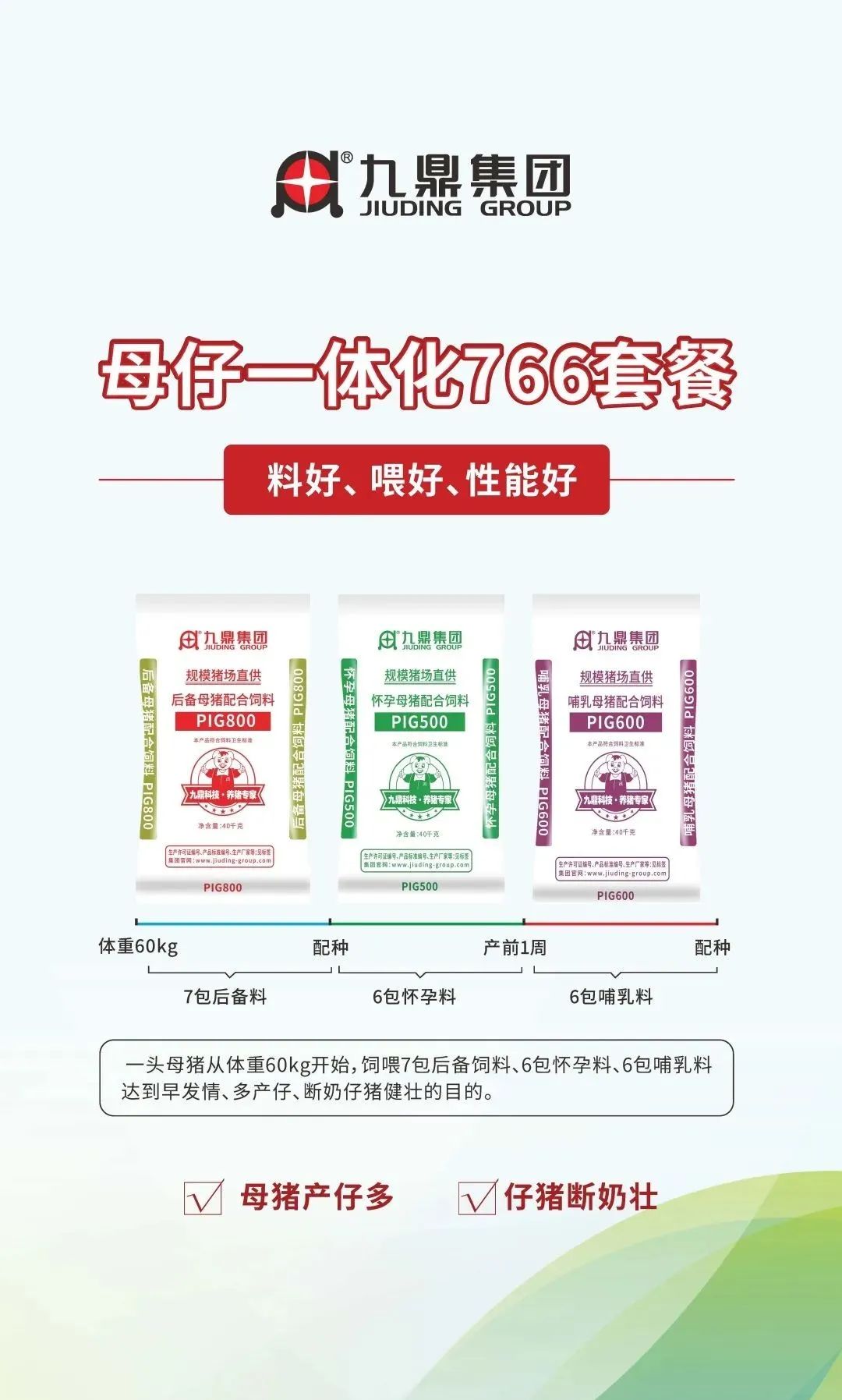 九鼎集團專注豬料生產研發29年,致力于為廣大養殖企業提供優質高效的飼料產品,在全國擁有分子公司近30家,年銷售飼料200萬噸,此次展會推出了全新的套餐系列: