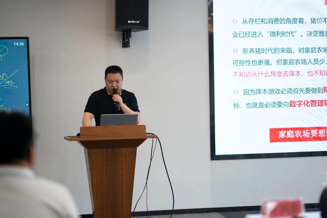 ▲潤農科技總經理劉南林分享了數字化服務促進養殖精益管理案例