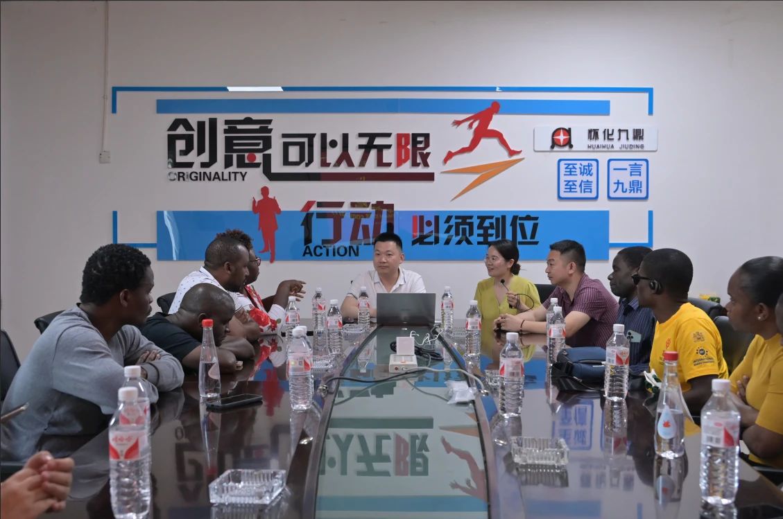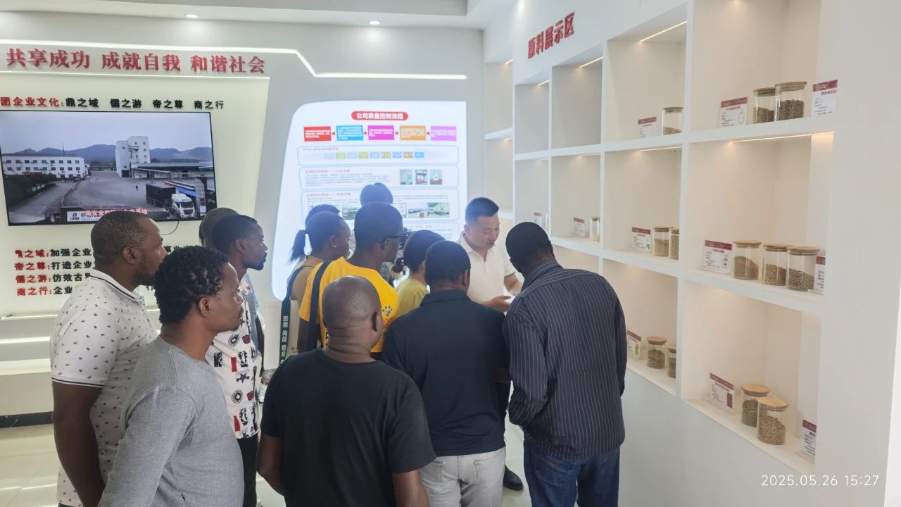 2025年5月26日,在懷化職業技術學院張光有老師的帶領下,來自非洲國家馬拉維的10名農業技術培訓班學員來到湖南九鼎科技(集團)有限公司子公司-懷化九鼎參觀交流。此次交流活動旨在促進中非農業技術交流與合作,雙方圍繞大宗原料采購、飼料生產工藝及質量管控展開深入溝通與交流。