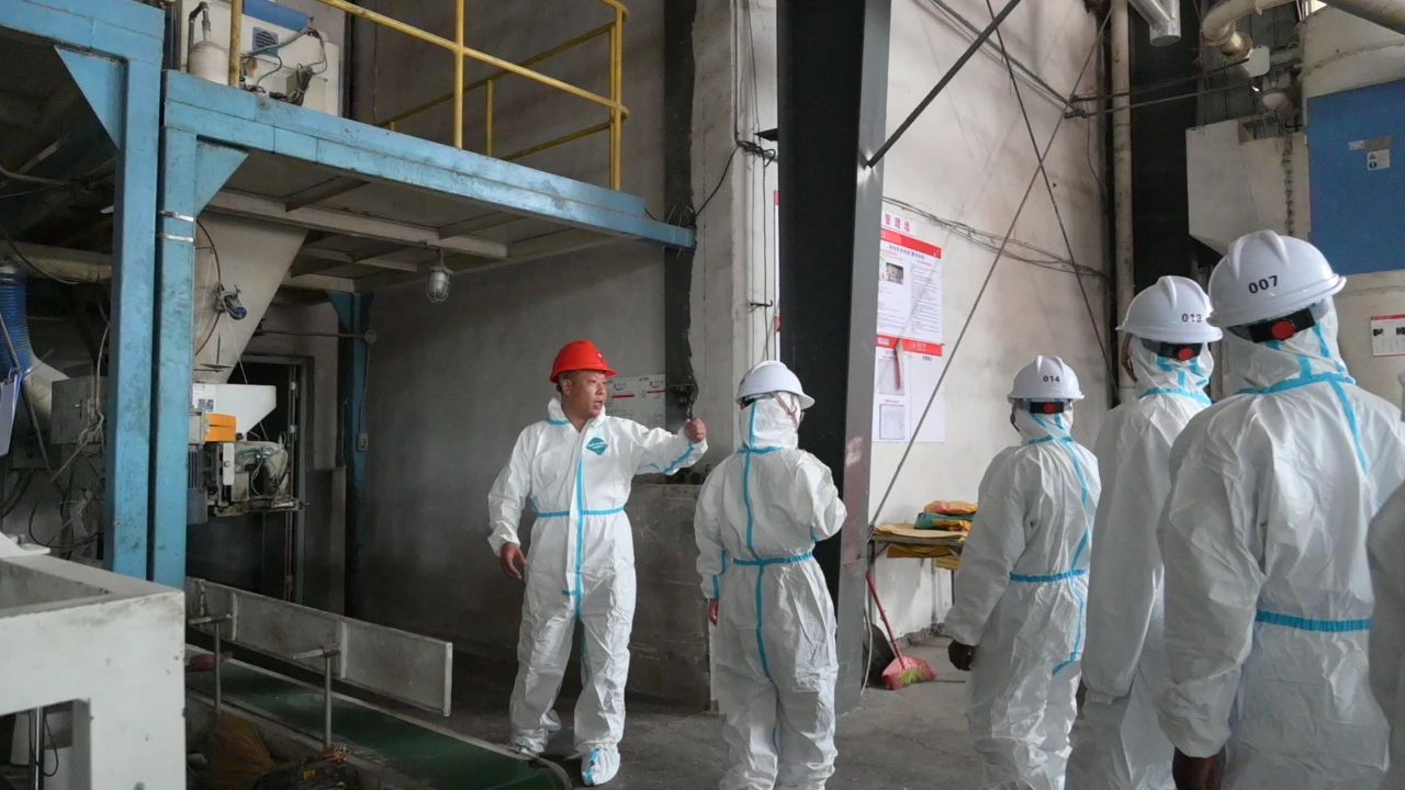 學員們穿戴防護服由消毒室進入生產車間,觀摩先進的生產設備,基地廠長劉叢軍沿途介紹原料預處理、配料、混合、制粒、冷卻、篩分、包裝等工藝流程,讓大家對飼料生產過程有了更直觀的認識。學員們對智能化的生產設備及現代化的生產流程表現出濃厚興趣,紛紛拍照記錄,并詳細詢問相關工藝節點操作流程。