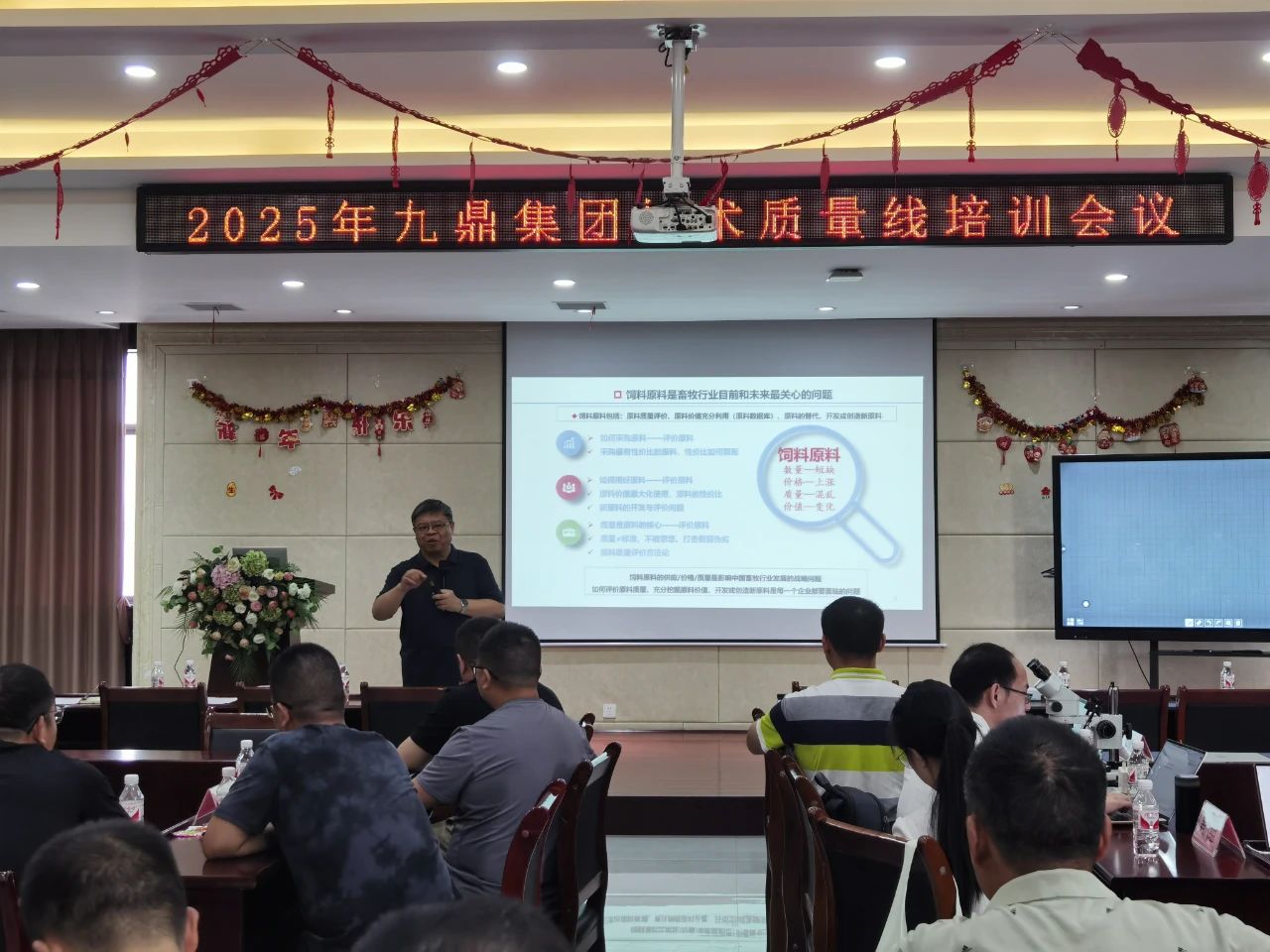2025年7月22日至23日,九鼎集團在岳陽基地湖南農牧成功組織召開技術質量線專題培訓會議。本次會議特邀飼料行業資深專家、青島蔚藍生物股份有限公司動物營養首席科學家郭吉原老師及其團隊現場授課指導,集團技術、質量、采購三線近 80 名骨干人員齊聚一堂,共同參與這場聚焦質量管理升級的專業培訓。
